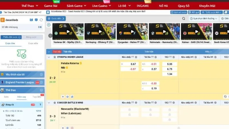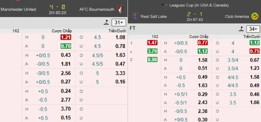 Bố cục gọn, phân loại màu sắc theo kèo châu Á, tài xỉu, tỷ lệ châu Âu