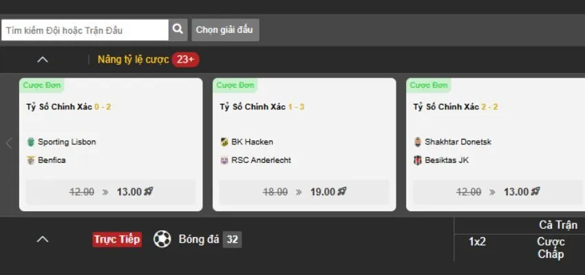 Khác với nhiều sảnh chỉ tập trung đa dạng kèo, SBOBET chuyên sâu vào kèo châu Á, tài xỉu, kèo hiệp 1, hiệp 2, kèo thẻ, kèo phạt góc với tỷ lệ payout lên tới 96% – 98%. SBOBET cũng cung cấp các loại kèo “đặc biệt” như kèo tỷ số chính xác, kèo cầu thủ ghi bàn, kèo phạt đền giúp người chơi đa dạng chiến thuật kiếm lợi nhuận.