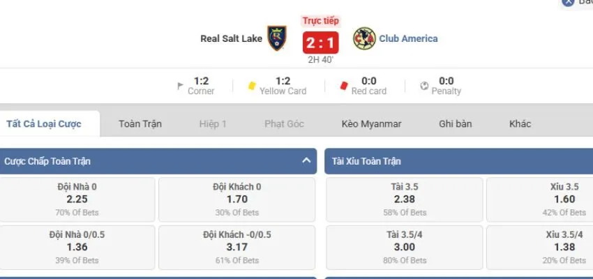 - Kèo phạt góc HT/FT, tài xỉu góc từng đội, kèo góc đội đầu tiên/đội cuối cùng.